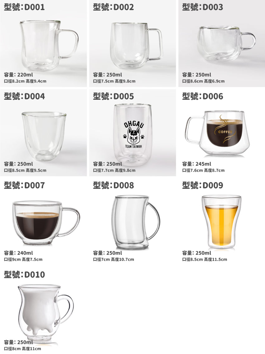 客製印刷雙層玻璃杯、雙層咖啡杯、雙層玻璃馬克杯等